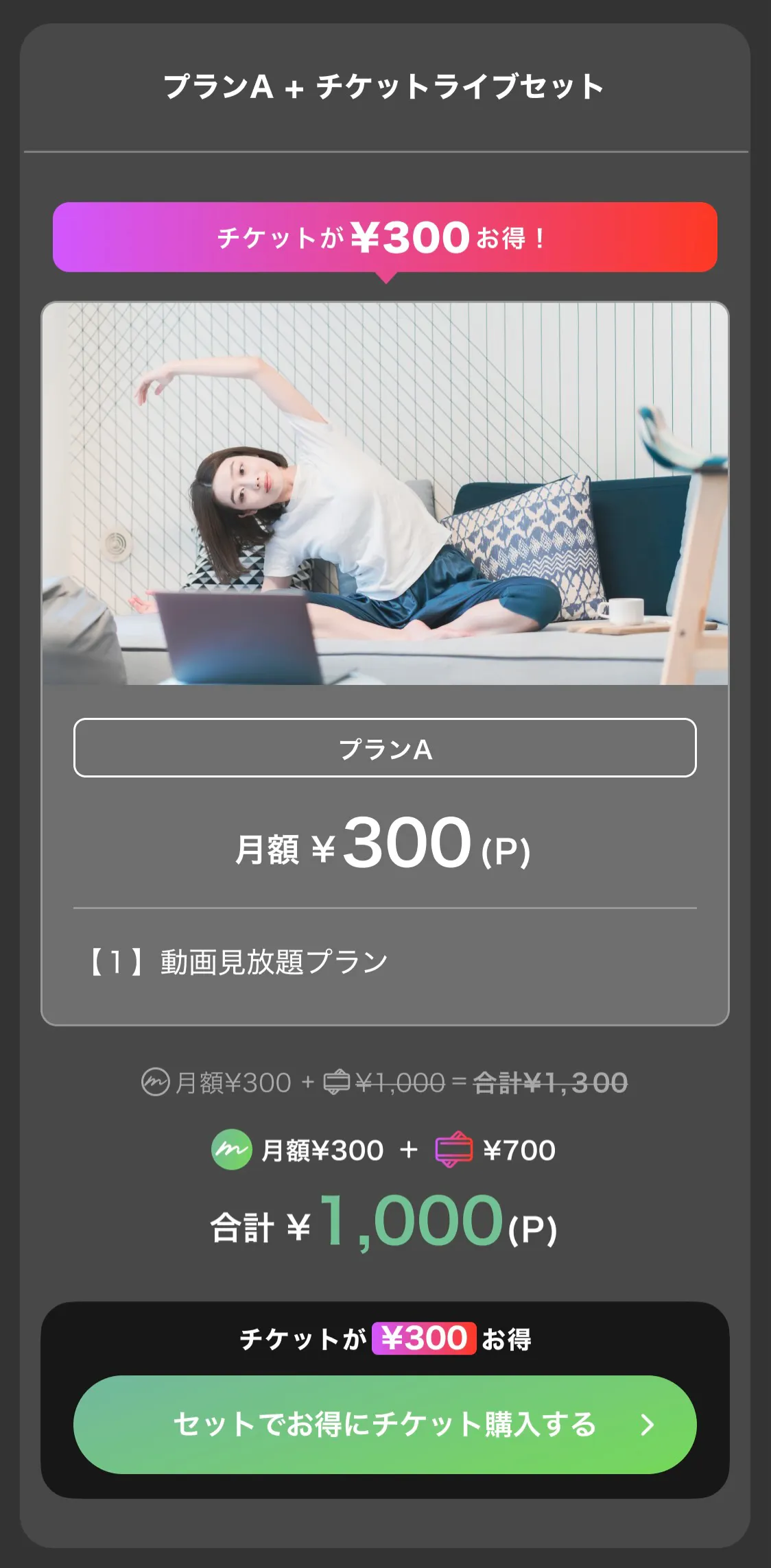 ¥1,000:ライブ配信+¥300/月のサブスク加入チケット