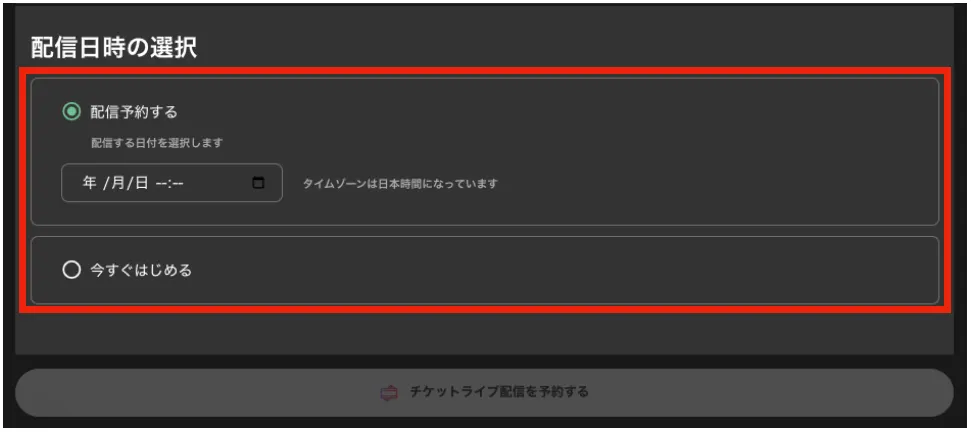 ※予定時刻前では『チケットライブ配信を開始する』のボタンが押せないので、5~10分前に予約を設定しておくのをおすすめします。