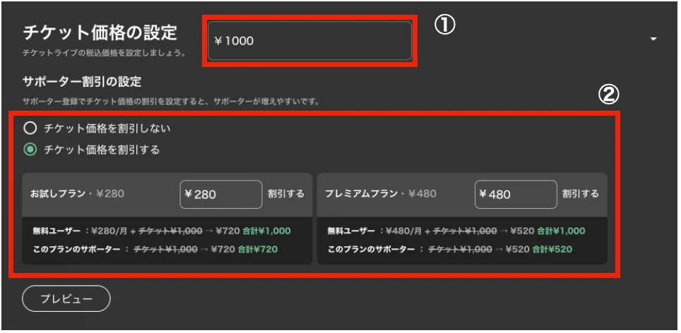 2_2. チケットの購入金額・サポーター割引設定の方法