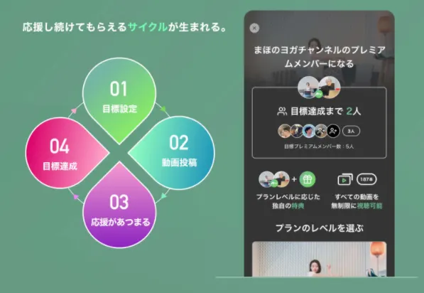 あなたの目標ややりたいことを設定することで、応援課金をより促すことができます。目標に向かって頑張る途中の裏側の様子を動画として公開するとより効果的です。