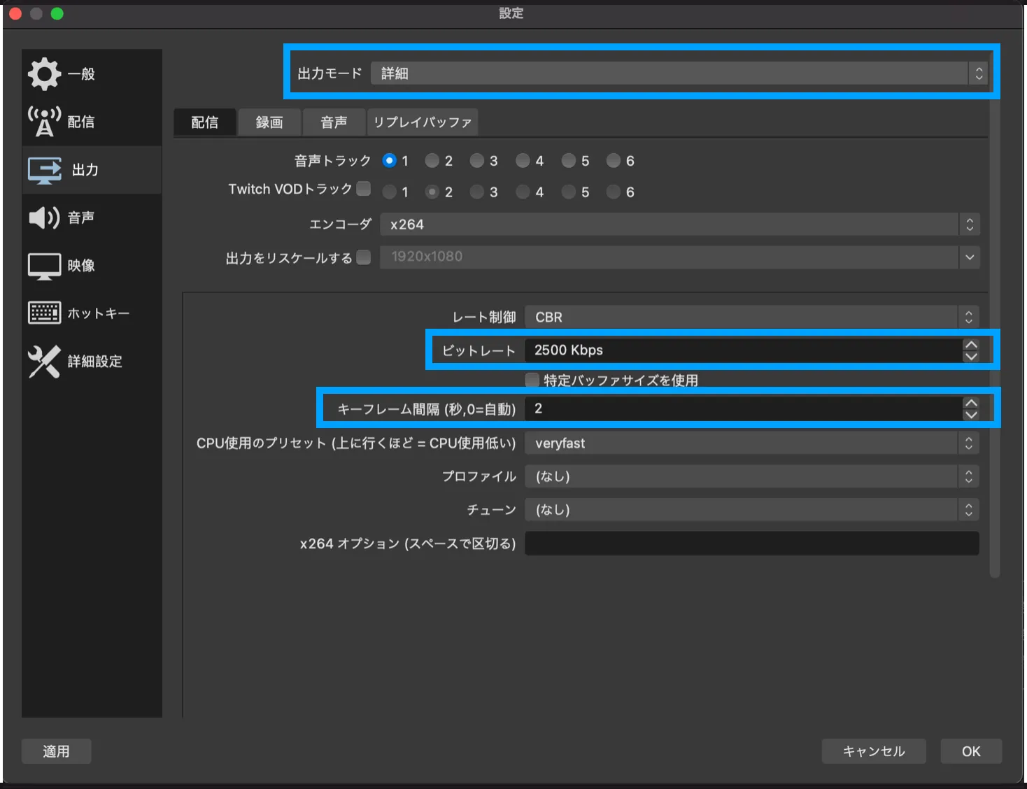 ③キーフレーム間隔:2 seconds ( ※0の場合、androidのアプリから視聴ができない場合があります )