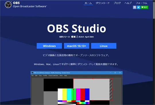 OBS Studio (以下OBS)は、PCからライブ配信を行うときに利用する無料のライブ配信用ソフトです。