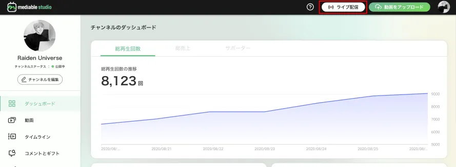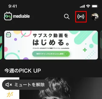 iOSアプリやパソコンから、チャンネル開設済みの方は画面右上のアイコンの隣に