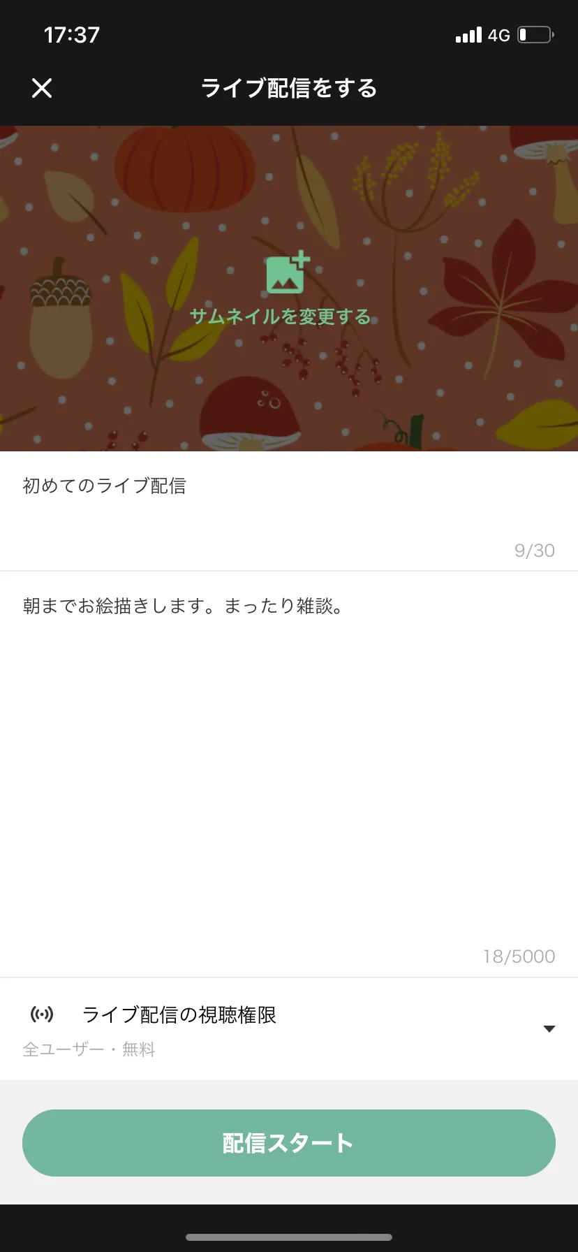 ライブ配信を開始する前に、基本的な項目を設定できます。