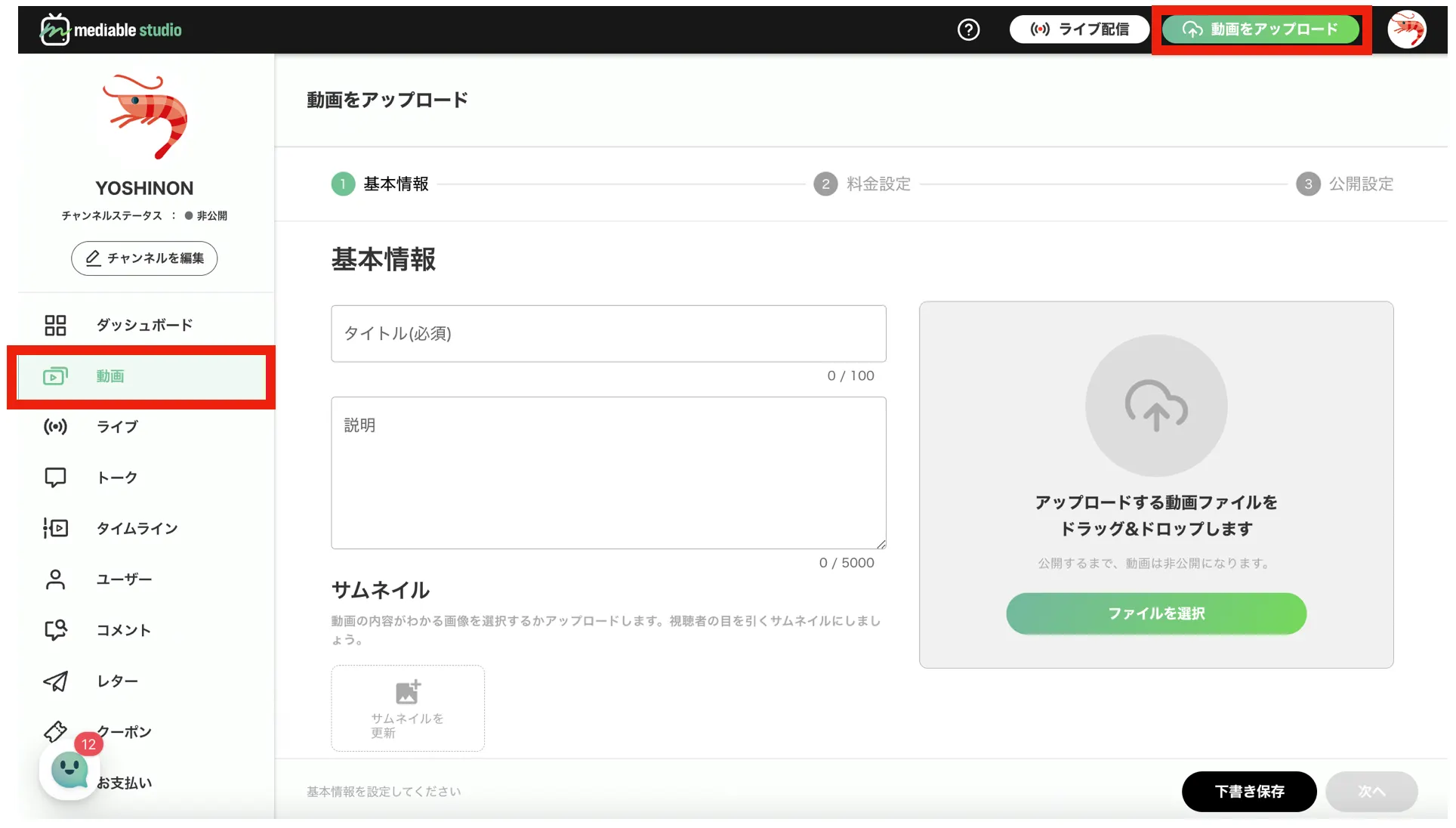mediable studioã®å³äžãåç»ãã¢ããããŒããããåç»ã®æçš¿ãã§ããŸãã